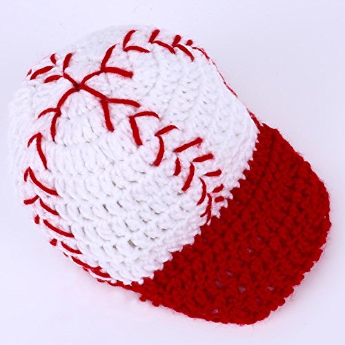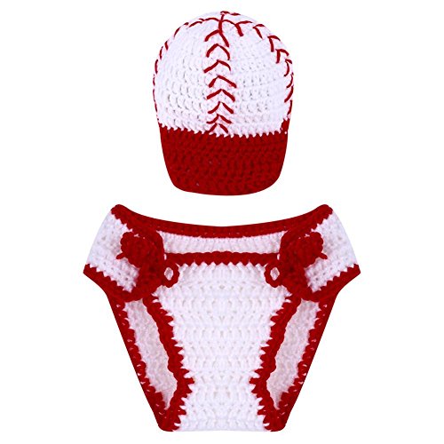 Domybest ベビー ニット 新生児 写真撮影 ニット 野球帽 小道具 柔らかい コットン 男の子 女の子 可愛い 帽子+パンツ 新生児セーター レッド