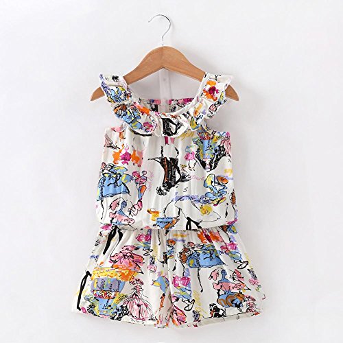 Domybest ベビー服 トップス+ショットパンツ キャミソール女の子 子供服 丸首 Tシャツ ノースリーブ 可愛い 花柄 超柔らかい 快適 水着 ホリデー 普段着 カジュアル ホーム着 プレゼント 春 夏 2点入り セット多色選ぶ