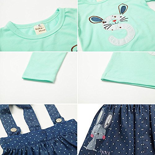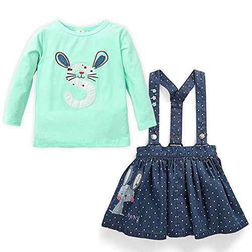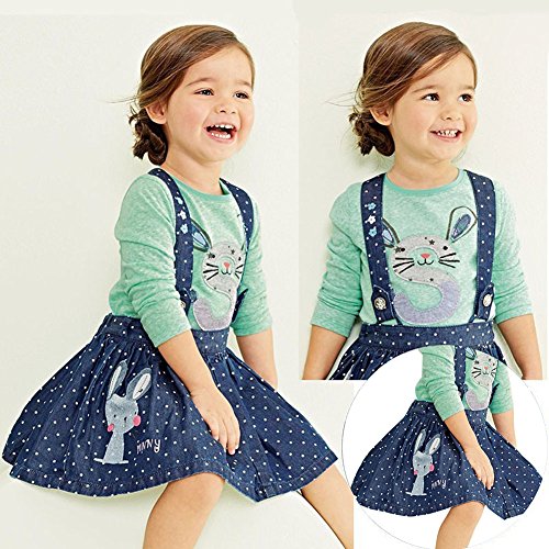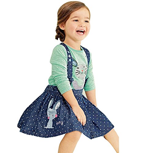 Domybest子供服 女の子 上下セット tシャツ+デニムスカート 2点セット サロペットスカート デニムサロペット キッズ ガールズ 長袖 春 秋 通学 通園 日常着 (120(身長110-120cm ))