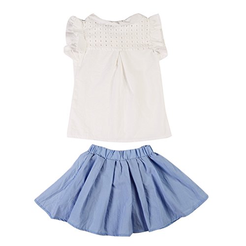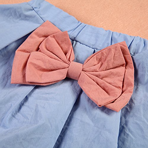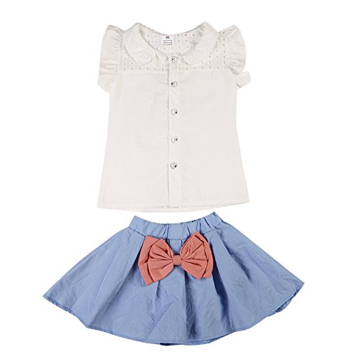 Domybest子供服 女の子 スカート セットアップ 子供ドレス フリル袖シャツ+スカート 上下 2点セット プリーツスカート 蝶結び キッズ服 赤ちゃん ガールズ カジュアル 通園 通学 お出かけ 普段着 春 夏 (120(5-6歳))