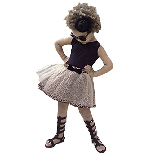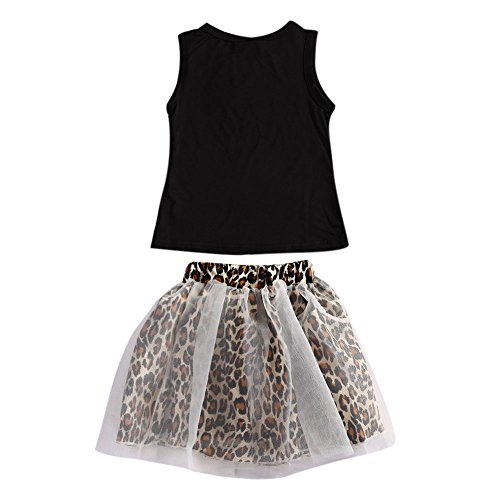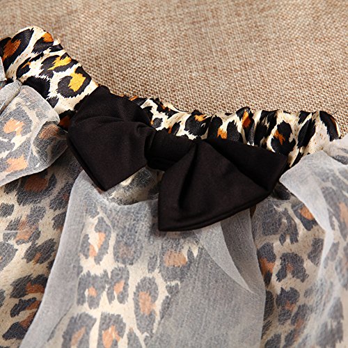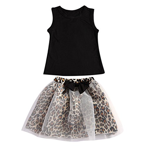 Domybest子供服 女の子 チュチュスカート セットアップ 子供ドレス タンクトップ+チュールスカート 上下 2点セット 蝶結び ヒョウ柄 ガールズ カジュアル 通園 通学 お出かけ 普段着 春 夏 (130(4-5歳))
