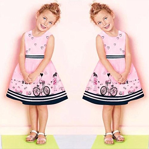 Domybestドレススカート ワンピース プリンセススカート 女の子 ピンク かわいい 2-7歳 ノースリーブ 花嫁介添人 パフォーマンス 発表会 七五三 卒業式 結婚式 演奏会 入園式