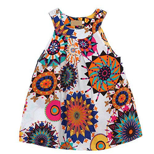 Domybest 子供服 スカート 女の子 プリンセスドレス ノースリーブ 抽象的な花 可愛い 柔らかい 春 夏
