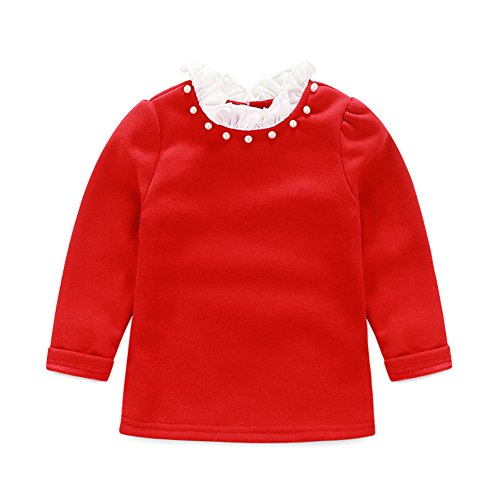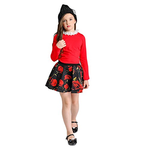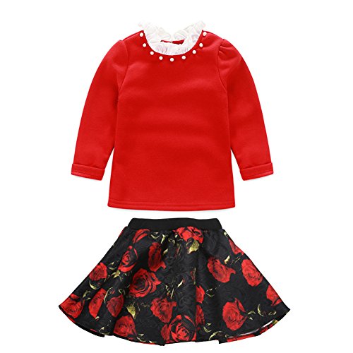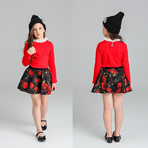 Domybest子供ドレス 女の子ドレス ガールズ フォーマル 赤いトップス+花柄プリントのスカート 上下セット 長袖 子供服 春夏秋 女の子 結婚式 発表会 入園式 入学式 卒園式 卒業式 七五三 パーティー (110(3-4歳))