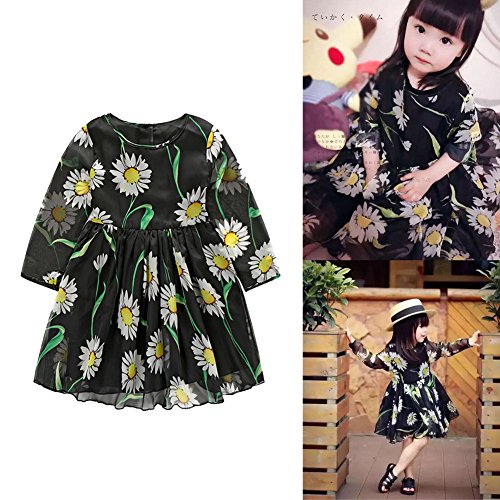 Domybest 子供服 女の子 フォーマル ワンピース 可愛い ドレス ガールズ ワンピース 花柄 プリント 長袖 シフォン 春夏秋 誕生日 入学式 卒業式 発表会 結婚式 七五三 (140(7-8歳))