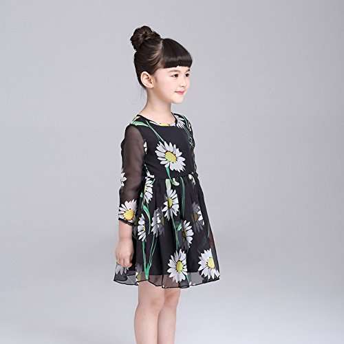 Domybest 子供服 女の子 フォーマル ワンピース 可愛い ドレス ガールズ ワンピース 花柄 プリント 長袖 シフォン 春夏秋 誕生日 入学式 卒業式 発表会 結婚式 七五三 (120(4-5歳))