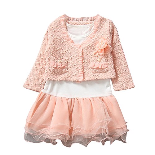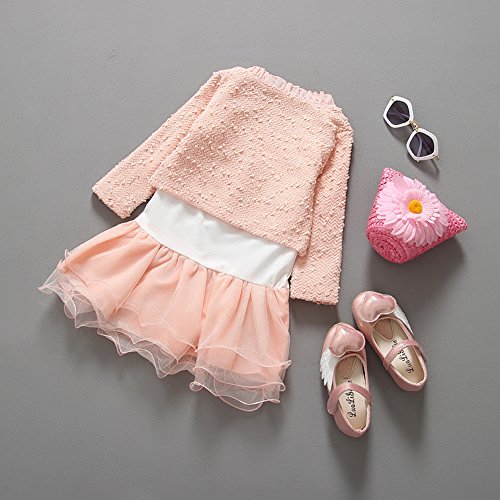 Domybest子供服 女の子 フォーマル ワンピース コート 2点セット ピンク チュチュスカート ドレス セット長袖 結婚式 発表会 入園式 入学式 卒園式 卒業式 七五三 (130(身長125-135cm))