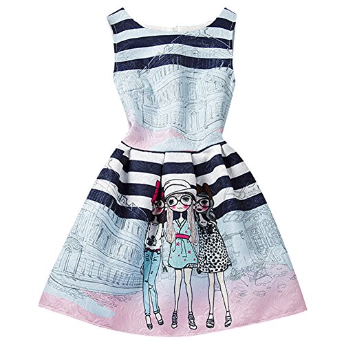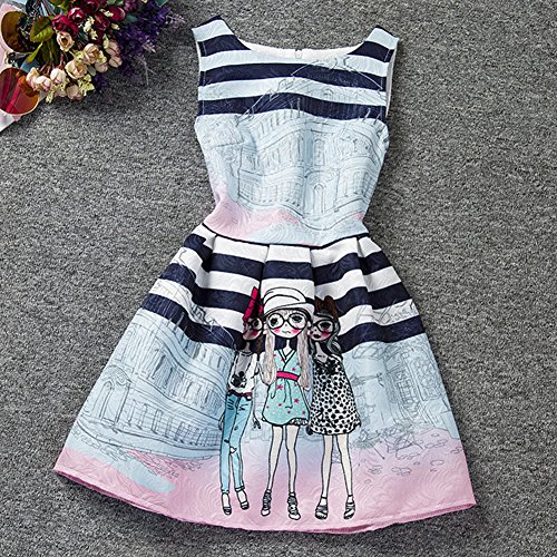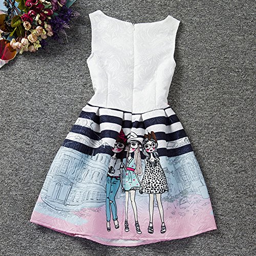 Domybest 子供服 女の子 ワンピース フォーマル サンドレス 可愛い ドレス ガールズ ワンピース プリント ノースリーブ 春夏 日常着 誕生日 入学式 卒業式 発表会 結婚式 七五三 (160(身長150-160cm))