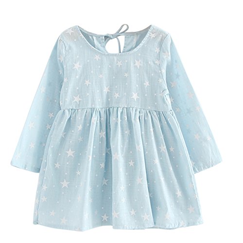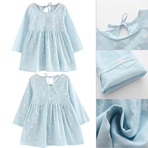 Domybest子供服 女の子 ワンピース キッズ服 ドレス 子供ドレス ガールズ トップス 長袖 柔らかい綿 星柄 プリンセスドレス 春 夏 秋 日常着 結婚式 発表会 入園式 入学式 卒園式 卒業式 七五三 (130(8-9歳))