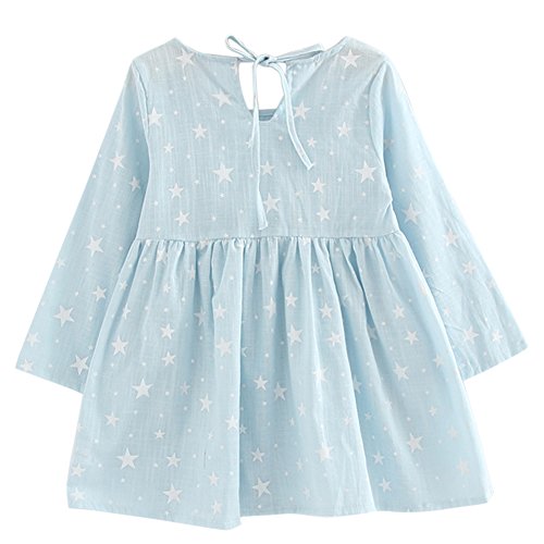 Domybest子供服 女の子 ワンピース キッズ服 ドレス 子供ドレス ガールズ トップス 長袖 柔らかい綿 星柄 プリンセスドレス 春 夏 秋 日常着 結婚式 発表会 入園式 入学式 卒園式 卒業式 七五三 (100(3-4歳))