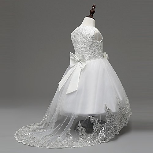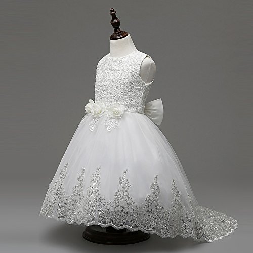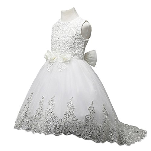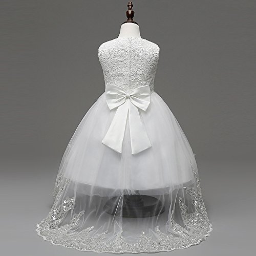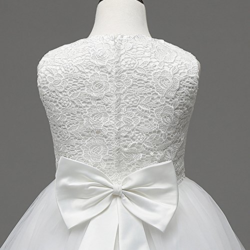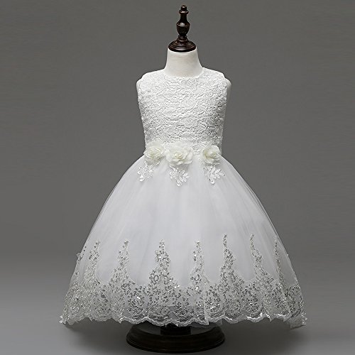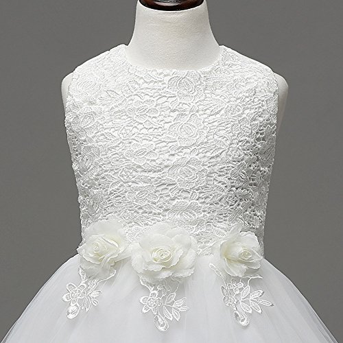 Domybest子供ドレス フォーマル 発表会 ワンピース ガールズ ホワイト ワンピース キッズドレス フラワードレス フラワーガール 花嫁介添人ドレス プリンセスドレス ウェディング ノースリーブ 刺繍 ピアノ 演奏会 結婚式 入園式 文化祭フォーマル パーティー (150(身長140-150cm))
