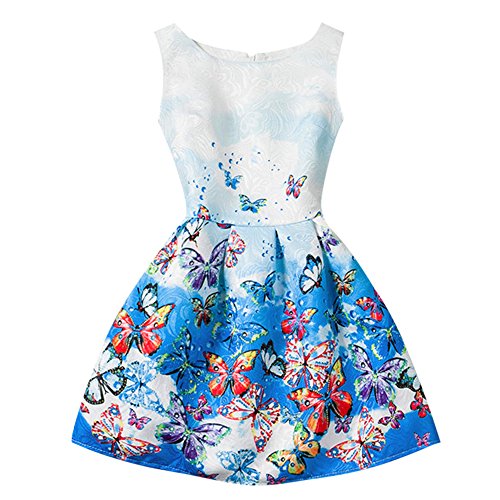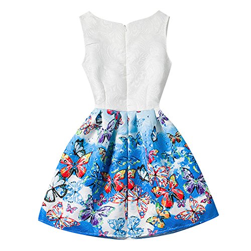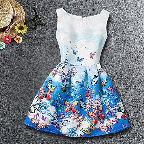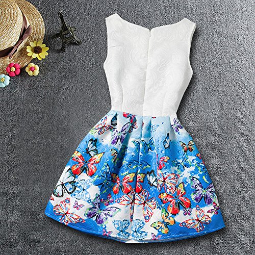 Domybest子供服 女の子 ワンピース フォーマル サンドレス 可愛い ドレス ガールズ ワンピース バタフライプリント ノースリーブ 春 夏 日常着 誕生日 入学式 卒業式 発表会 結婚式 七五三 (140(身長130-140cm), A)