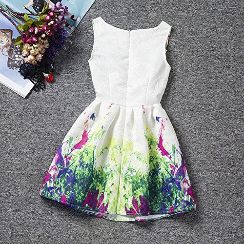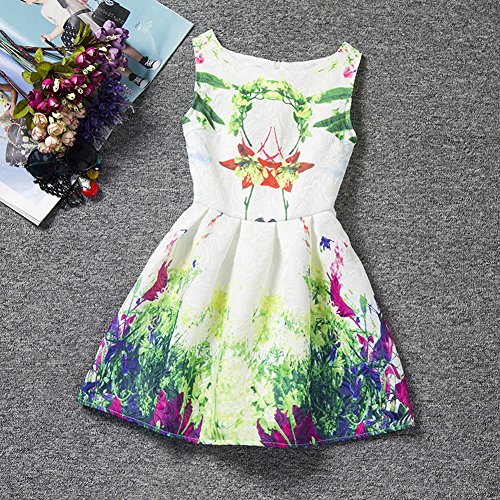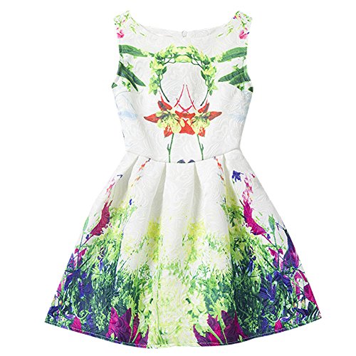 Domybest 子供服 女の子 ワンピース フォーマル サンドレス 可愛い ドレス ガールズ ワンピース プリント ノースリーブ 春 夏 欧米風 日常着 誕生日 入学式 卒業式 発表会 結婚式 七五三 (150(身長140-150cm))