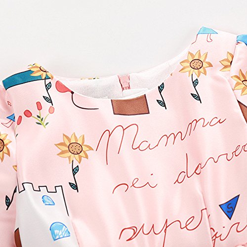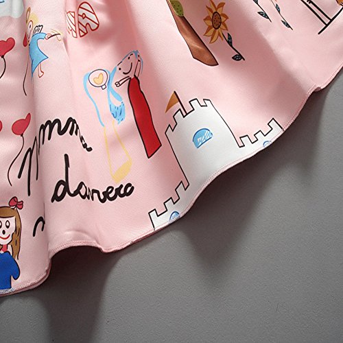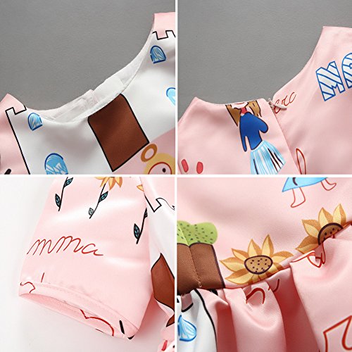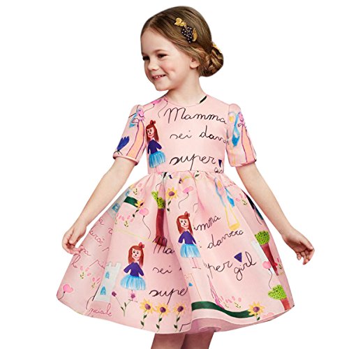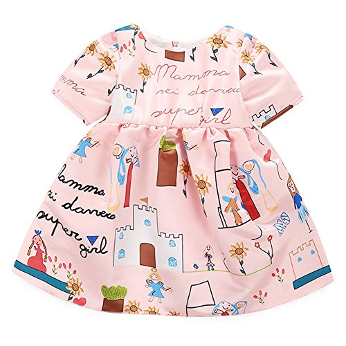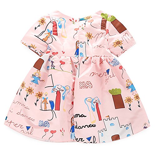 Domybest子供服 女の子 ワンピース フォーマル ピンク サンドレス 可愛い ドレス プリンセスドレス ガールズ ワンピース プリント 半袖 春 夏 日常着 誕生日 入学式 卒業式 発表会 結婚式 七五三 (100(身長90-100cm))