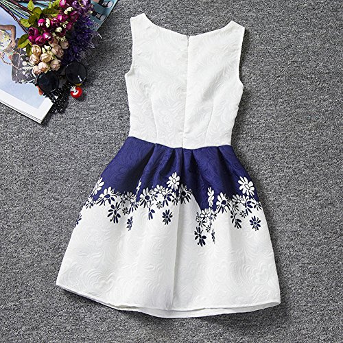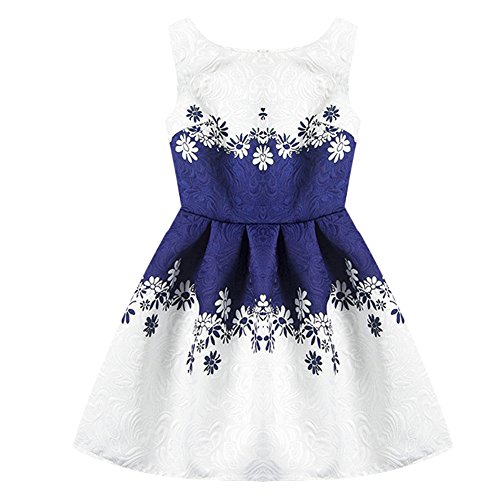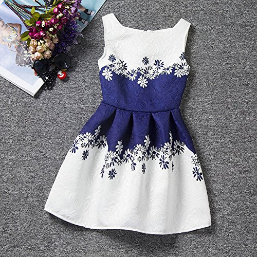 Domybest 子供服 女の子 ワンピース フォーマル サンドレス 可愛い ドレス ガールズ ワンピース プリント ノースリーブ 春 夏 欧米風 日常着 誕生日 入学式 卒業式 発表会 結婚式 七五三 (130(身長120-130cm))