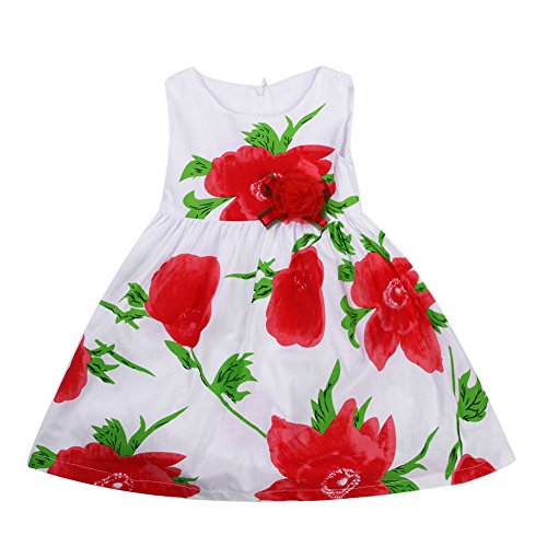 Domybest 子供服 女の子 ワンピース サンドレス フォーマル 可愛い ドレス ガールズ ワンピース 花柄 プリント ノースリーブ 春 夏 秋 誕生日 入学式 卒業式 発表会 結婚式 七五三 (130(6-7歳))