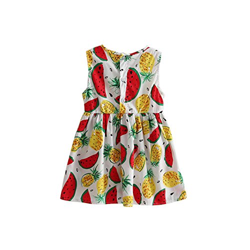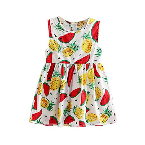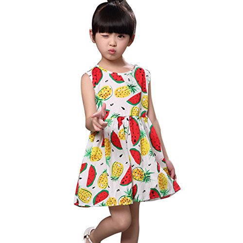 Domybest 子供服 女の子 ワンピース ガールズ 女児 スカート 子供服 サンドレス 可愛い ドレス ガールズ ワンピース ノースリーブ スイカプリント 春 夏 秋 出産祝い 誕生日 入学式 卒業式 発表会 結婚式 七五三 (110(4-5歳), ホワイト)