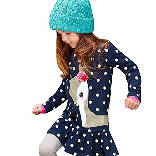 Domybest子供服 女の子 ワンピース チュニック 長袖 鹿 水玉柄 春秋冬 スカート カジュアル ガールズ 可愛い 女の子 キッズ 子供ドレス トップス 通園 通学 普段着 パーティー 誕生日 (2T(身長85-90cm))