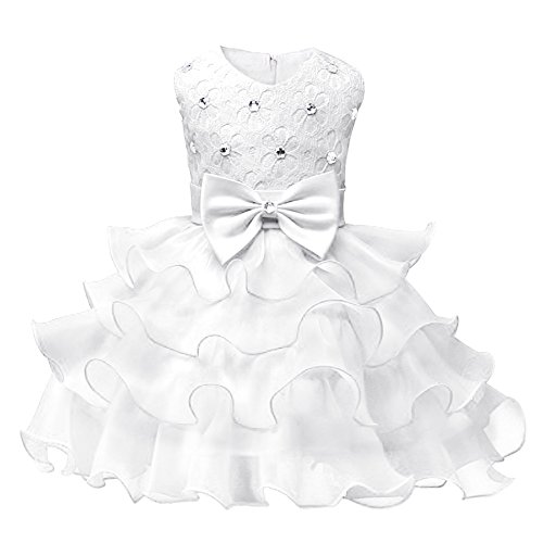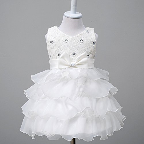 Domybest子供服 女の子 ワンピース フォーマル 子供ドレス プリンセスドレス フォーマルドレス フラワーガール キッズドレス ガールズ ベビー ワンピース ノースリーブ 春 夏 パーティー ピアノ 誕生日 入学式 卒業式 発表会 結婚式 七五三 6ヶ月~8歳 (S(6-9ヶ月), ホワイト)