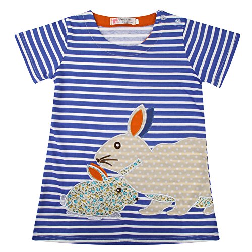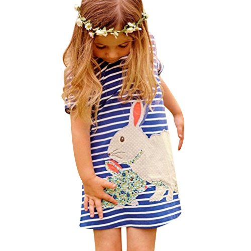 Domybest ベビー服 子供服 女の子 ワンピース 赤ちゃん 女児 スカート サンドレス 可愛い ドレス ガールズ ワンピース コスチューム ボーダー ウサギプリント 半袖 春 夏 秋 出産祝い 誕生日 入学式 卒業式 発表会 結婚式 七五三 (130(6-7歳))