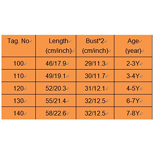 100: 年齢:2-3歳 ドレスの長さ:46cm バスト:29*2cm