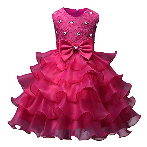 Domybest子供服 女の子 ワンピース フォーマル 子供ドレス プリンセスドレス フォーマルドレス フラワーガール キッズドレス ガールズ ベビー ワンピース ノースリーブ 春 夏 パーティー ピアノ 誕生日 入学式 卒業式 発表会 結婚式 七五三 6ヶ月~8歳 (120(5歳), バラ色)