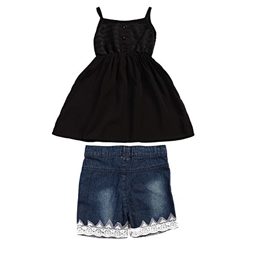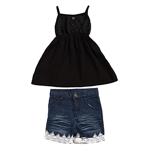 Domybest子供服 女の子 チュニック キャミソール ガールズ トップス+ショートパンツ2点セット 春 夏 デニムパンツ 上下セット 普段着 お出かけ ビーチ 海辺 (120(4-5歳))