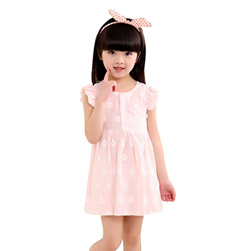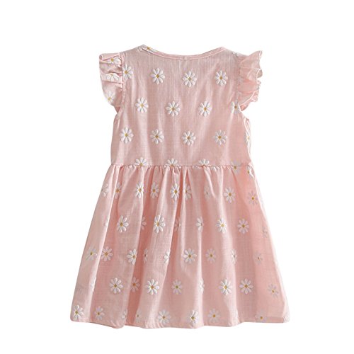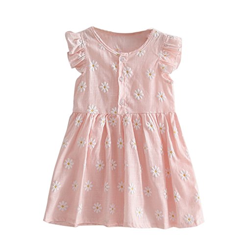 Domybest 子供服 ベビー服 女の子 ワンピース チュニック 赤ちゃん 女児 スカート 子供服 サンドレス 飛び袖 花柄 ドレス ガールズ ワンピース 春 夏 秋 出産祝い 誕生日 入学式 卒業式 発表会 結婚式 七五三 (110(4-5歳), ピンク)