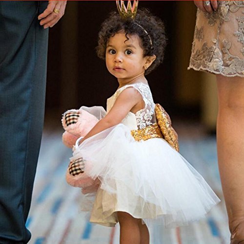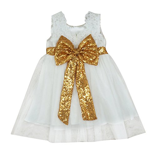 Domybest 子供服 ベビー服 女の子 ワンピース ホワイト 1-6歳 お姫様 ドレス 女児 サンドレス 可愛い 春 夏 秋 誕生日 入園式 結婚式 普段着 撮影 (110)