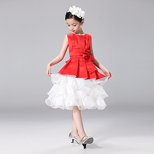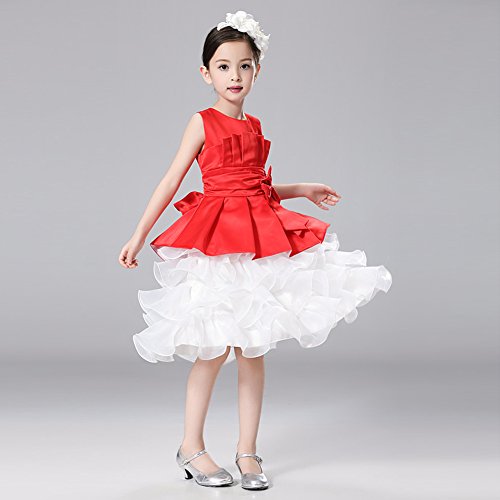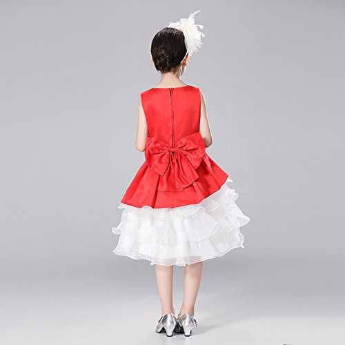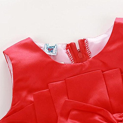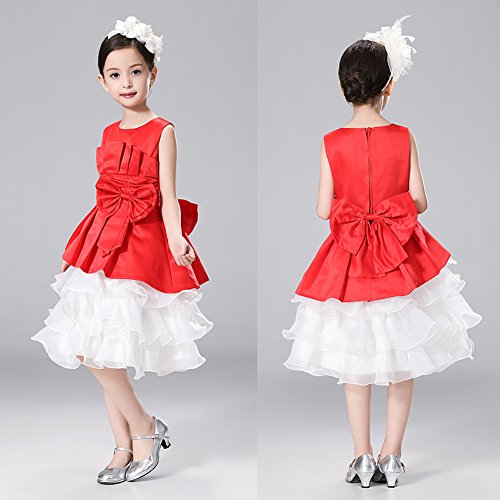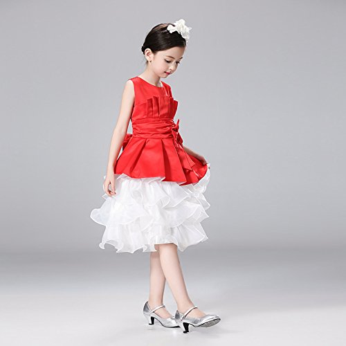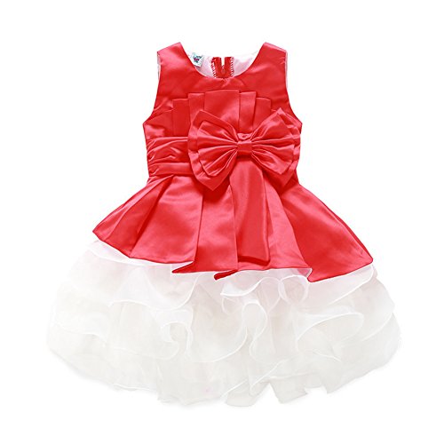 Domybest子供服 女の子 ワンピース 袖なし 2-7歳 ふわふわ 赤 可愛いリボン フォーマル 春夏秋 卒園式 入学式 発表会 結婚式 七五三 通園 通学 (110)