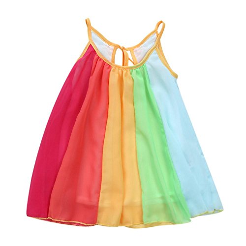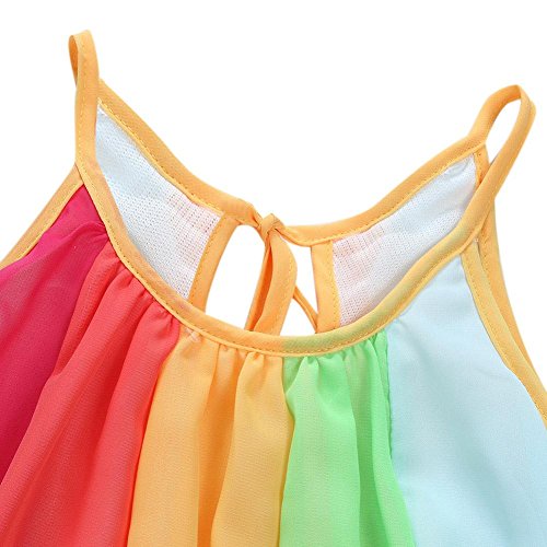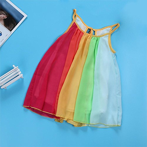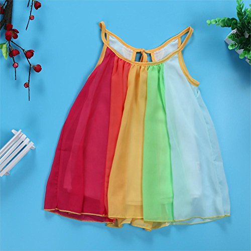 Domybest子供服 女の子 ワンピース 袖なし 2-7歳 ふわふわ 虹色 裾切込 可愛い花柄 春夏秋 卒園式 入学式 発表会 結婚式 七五三 通園 通学 (120)
