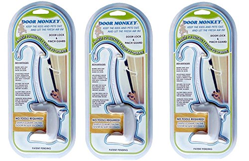 ドアモンキーは小さな子どもの部屋の出入りを意図的に妨害するためのドアロックツールです。 妨害には2つのパターンがあります。ひとつは侵入、飛び出しの防止。 もう一つは、部屋の中に閉じ込められる危険防止。閉じ込められたら外鍵を持っていない場合、もしくは外鍵がついていないドア仕様の場合とても危険です。 設置は数秒で完了(工具不要)。誰でも簡単に使いこなせます。ドアモンキーのユニークなデザインは、従来のドアロックにはない「容易な解除」という利便性をもたらします。 Amzonアメリカでは、 1,400 以上のカスタマーレビューが寄せられており、900人以上が五つ星(大満足)の評価です。 ドアモンキーをご利用いただき、子どもの安全にお役立てください。(ペットとの生活にも有効なツールです)
