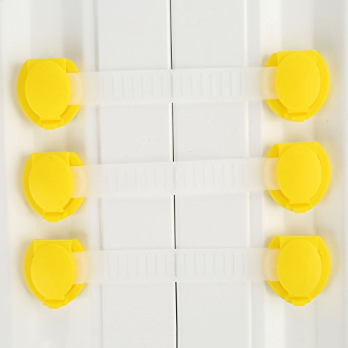 10個入り ベビーガード ストッパー 赤ちゃん 安全ロック 引き出し 戸棚 冷蔵庫 ドアロック イエロー 15.5cm