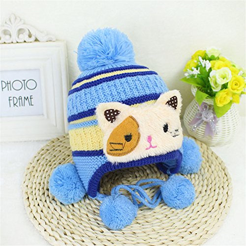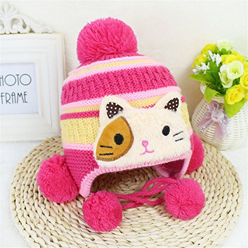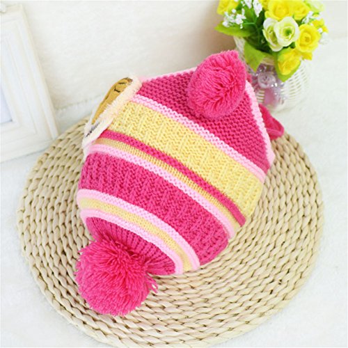 防寒 ニット帽子 女の子 男の子 かわいい防寒帽子 ボンボン付き 2017 新製品 red