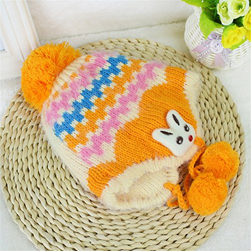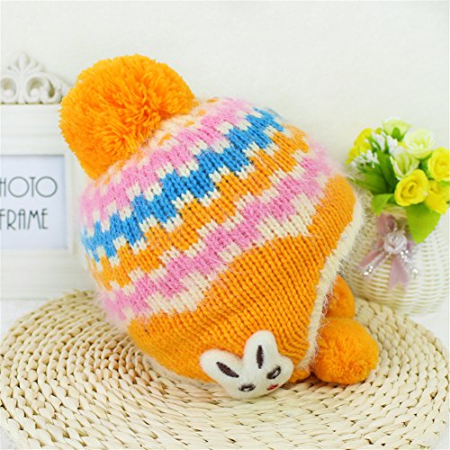 防寒 かわいい ベビー キッズ 赤ちゃん ニット帽子 うさぎちゃん風 ボンボン付き 2017 新製品 orange