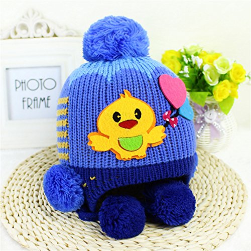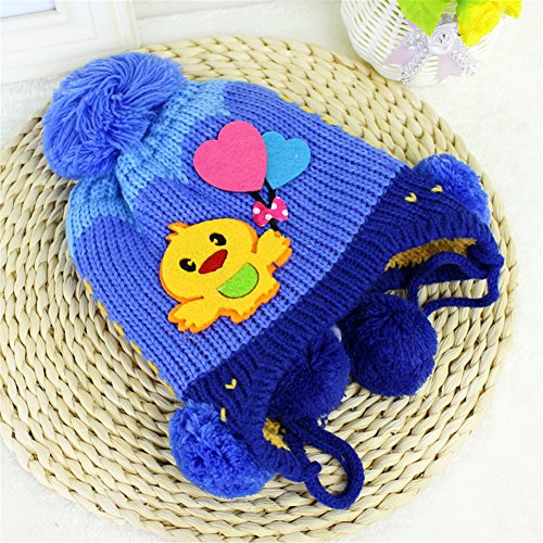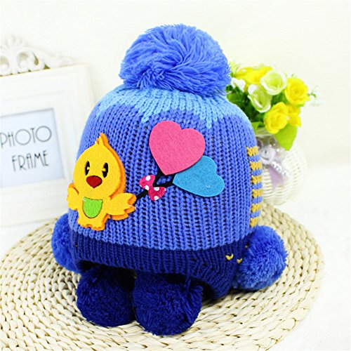 ベビー キッズ 赤ちゃん ニット帽子 ボンボン付き 耳まであったか! 防寒 保温 冬 帽子 鳥 2017 新製品 navy blue