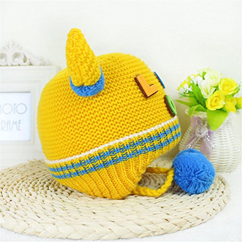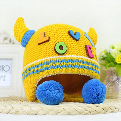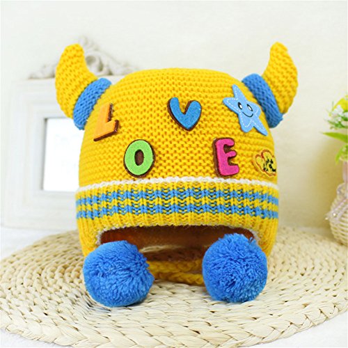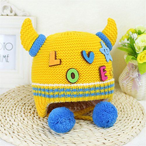 ニット帽子 保温 女の子 男の子 可愛い 防寒帽子 Love 飾り 耳まであったか! 2016 新製品 yellow