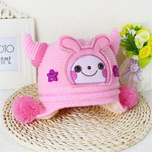 防寒 ニット帽子 女の子 男の子 可愛い 防寒帽子 ボンボン付き 2017 新製品 light pink