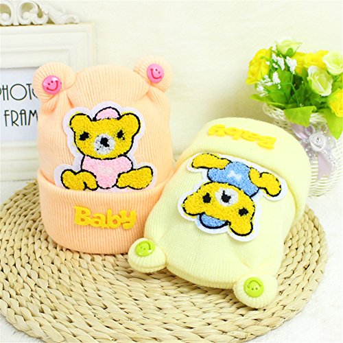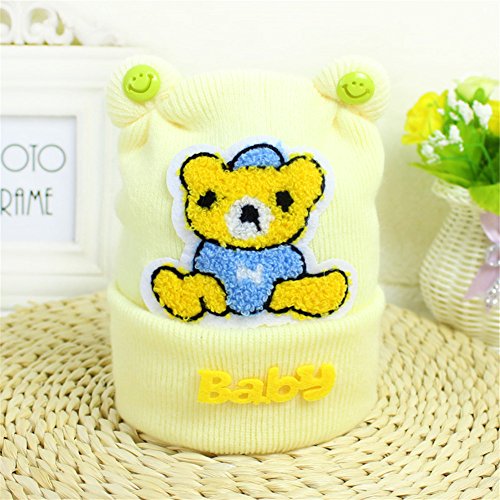 新生児帽子 クリスマス 防寒 ニット帽子 ベア飾り 2017新製品 light yellow