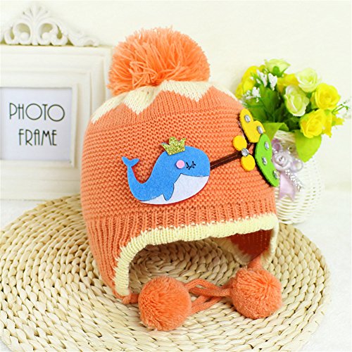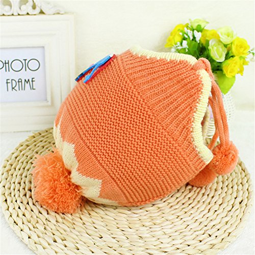 耳まであったか! ベビー キッズ 赤ちゃん ニット帽子 ボンボン付き 防寒 保温 ニット帽子 2017 新製品 orange