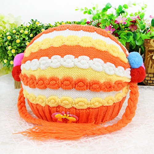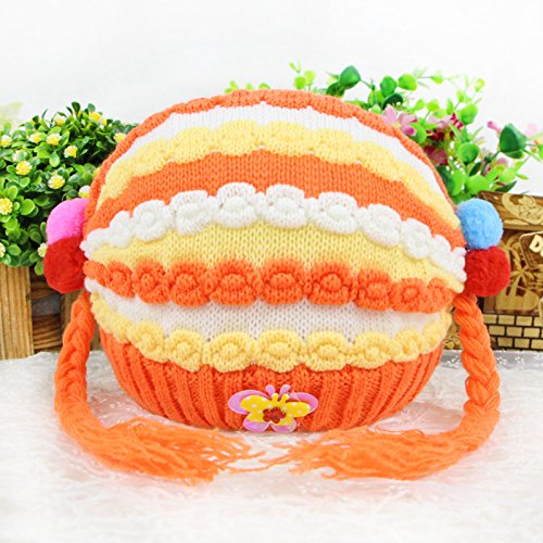 防寒 かわいい ベビー キッズ 赤ちゃん ニット帽子 花飾り 2017 新製品 (orange)