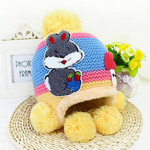 ニット帽子 ボンボン付き 耳まであったか!ベビー キッズ 赤ちゃん用 防寒 冬 保温 帽子 2017 新製品 yellow