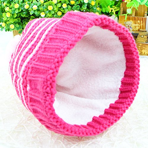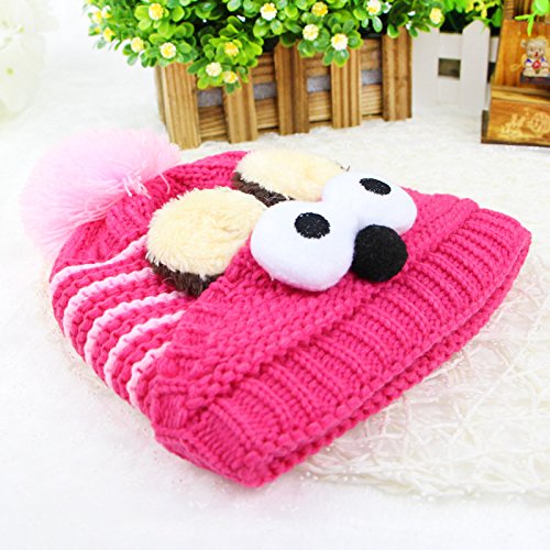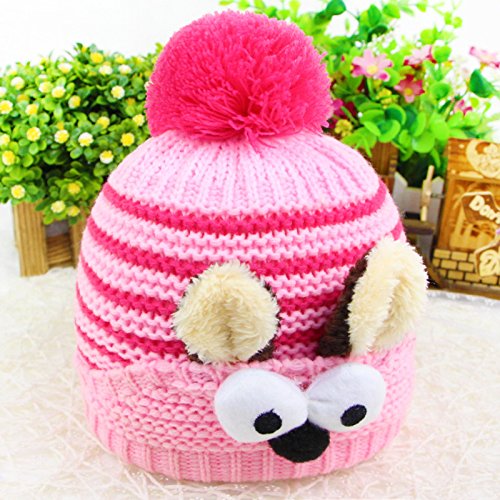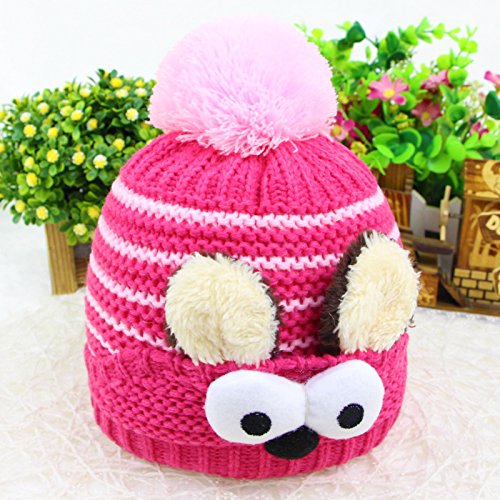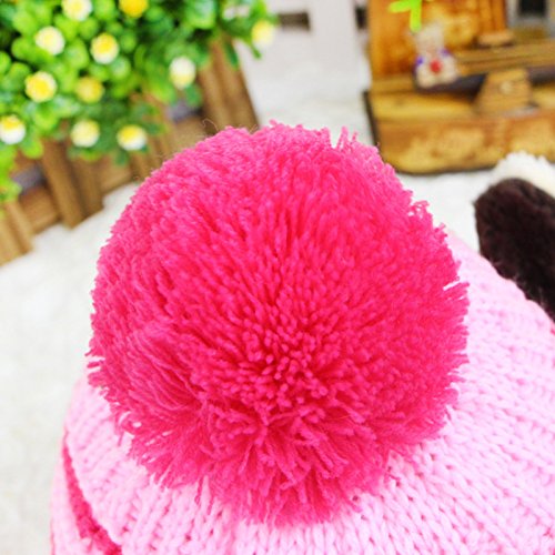 防寒 かわいい ベビー キッズ 赤ちゃん ニット帽子 うさぎちゃん風 ボンボン付き 2017 新製品 (red)