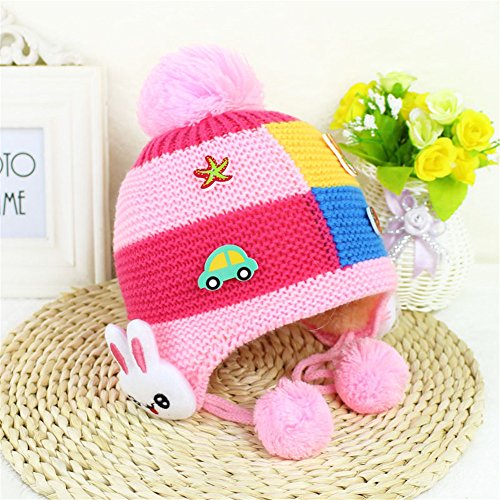 ベビー キッズ 赤ちゃん用 ニット帽子 ボンボン付き 耳まであったか!冬 防寒 保温 帽子 2017 新製品 pink