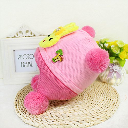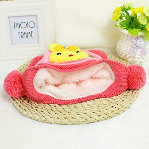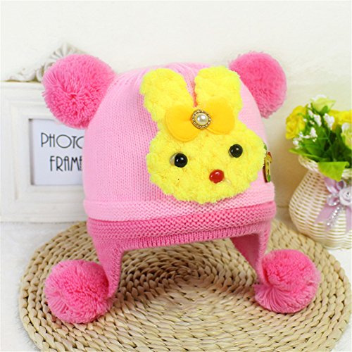 ベビー キッズ 赤ちゃん ニット帽子 ボンボン付き 耳まであったか! 防寒 保温 冬 帽子 うさぎ 2017新製品 pink