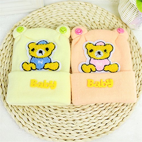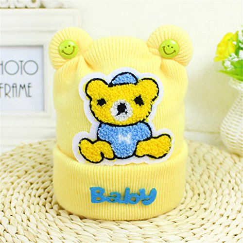 新生児帽子 クリスマス 防寒 ニット帽子 ベア飾り 2017新製品 yellow