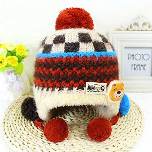 耳まであったか! ニット帽子 ボンボン付き 保温 ベビー キッズ 赤ちゃん 子 子供 用 可愛い 防寒帽子 2017 新製品 beige
