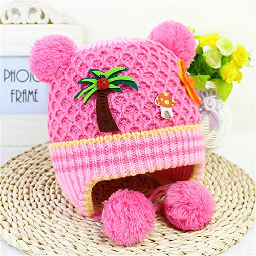ニット帽子 ボンボン付き 耳まであったか!ベビー キッズ 赤ちゃん 子 子供 用 防寒 保温 冬 帽子 2017 新製品 pink