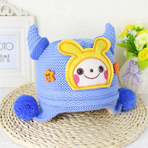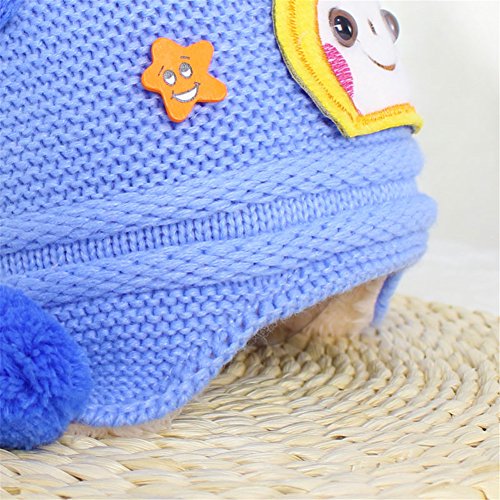 防寒 ニット帽子 女の子 男の子 可愛い 防寒帽子 ボンボン付き 2017新製品 blue