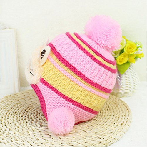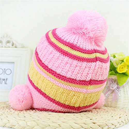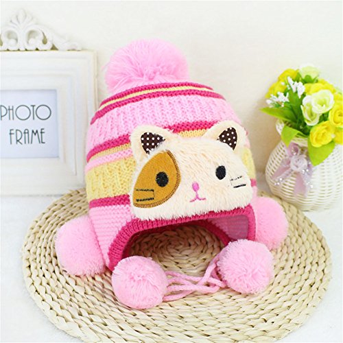 防寒 ニット帽子 女の子 男の子 かわいい防寒帽子 ボンボン付き 2017 新製品 pink